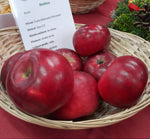 PLODY: stredný až väčší plod splošteného, hranatého tvaru. Šupka je hladká, lesklá, mastná, pevná, zafarbená karmínovou červeňou a hrdzavými lenticelami. Dužina je tuhšia, pevná, chrumkavá, voňavá, žltkavo biela. Chuť ľahko korenistá, lahodná, s malinovou arómou. Plody obsahujú vysoký obsah fenolických látok a antioxidantov (inhibícia rakoviny).