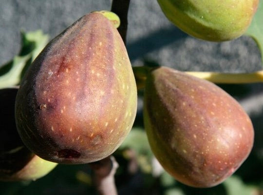 PLODY: veľké, hruškovito pretiahnuté, s fialovo-hnedou šupkou a svetločervenou aromatickou dužinou lahodnej, sladkej chuti.