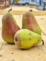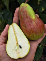 PLODY: stredne veľké (70-120 g, niekedy aj 150 g), pravidelné, podlhovasté hruškovité. Šupka je lesklá a hladká, žltozelená s červenými bodkami, na slnečnej strane mramorovano červená. Dužina je belavá, jemná, veľmi šťavnatá, maslovej, rozplývavej konzistencie. Chuť je výborná, sladká a len ľahko korenistá a jemne kyselkavá. Zrelé plody výrazne voňajú.