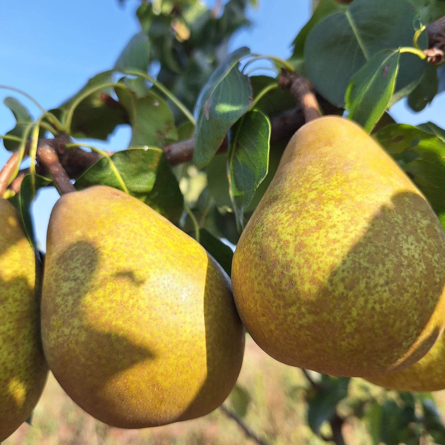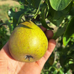 PLODY: veľké a pravidelné, tupo kužeľovité, šupka šedozelená, husto bodkovaná, škoricovo hrdzavá, na slnečnej strane načervenalá. Dužina belavá, niekedy až lososovo ružovkastá, veľmi šťavnatá, rozplývavá , jemná, chuť výborná , sladko korenistá.
