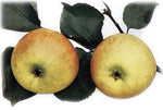 PLODY: veľké až veľmi veľké (priemerne 230 g), pravidelné plody plocho guľovitého tvaru. Šupka je čiastočne drsná, pomarančovo žltá, krytá červeným pruhovaním alebo červeným líčkom na slnečnej strane. Dužina je žltkastá, šťavnatá, hutná, sladkokyslá, korenistá, veľmi dobrej „renetovej“ chuti.