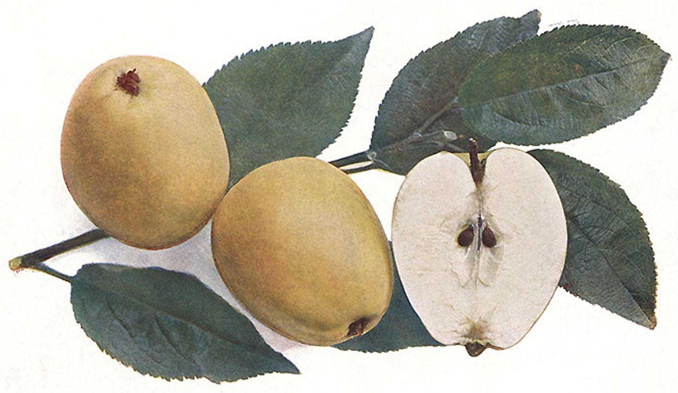 PLODY: menšie až stredne veľké (priemerne 100 g), tvarovo nepravidelné od plocho kužeľovitých po vysoko kužeľovité či vajcovité, pri kalichu sú na jednu stranu skosené. Šupka je jemná, lesklá, hebká, niekedy mastná až lepkavá, žltá v rôznych odtieňoch s červeným nádychom. Dužina je belavá, tuhá, šťavnatá, jemnozrnná, krehká, chrumkavá, pri skladovaní rýchlo stráca šťavnatosť. Chuť je sladkokyslá a vyvážená, bez zvláštnej vône, ale korenistá s typickou príchuťou. Plod nepodlieha otlačeniu.
