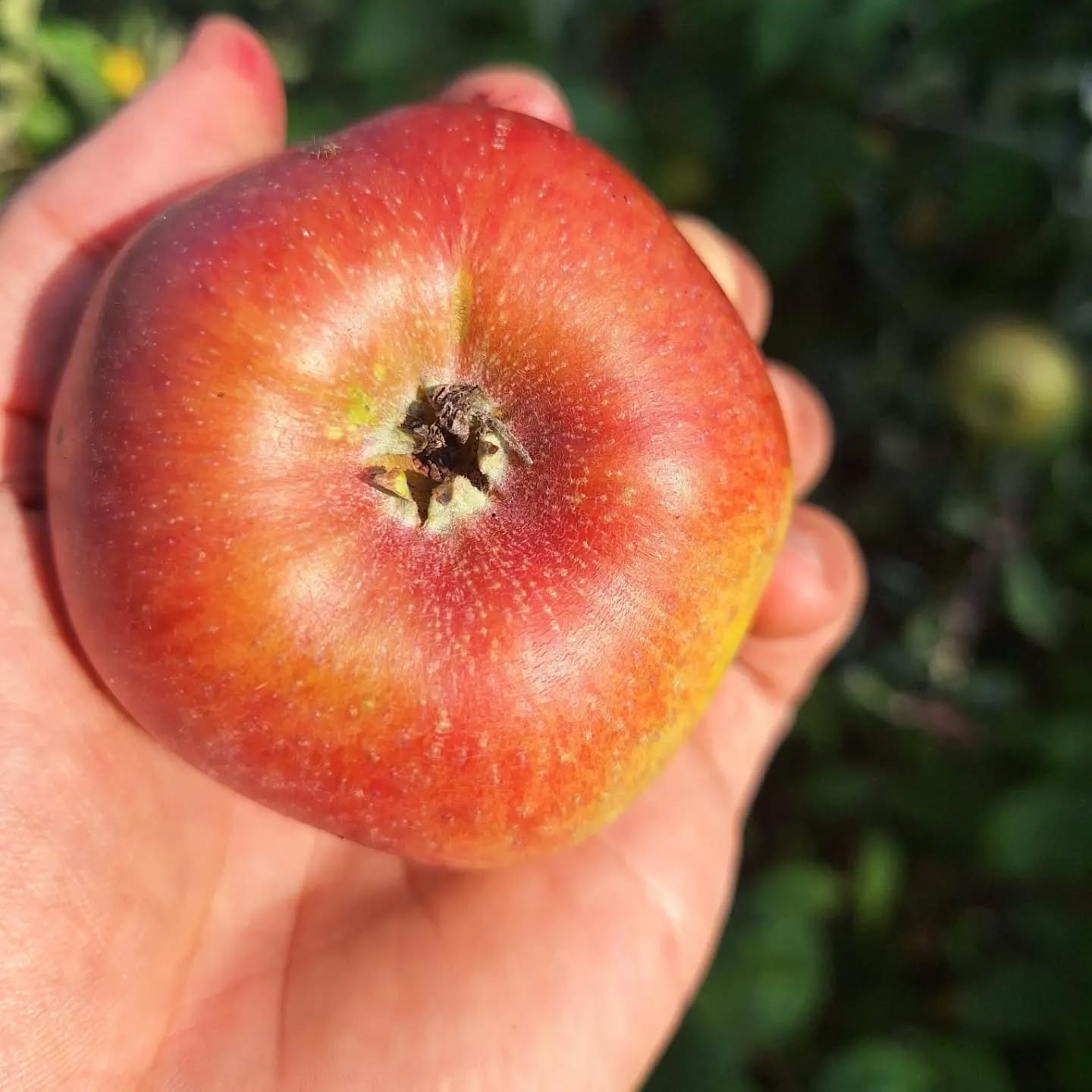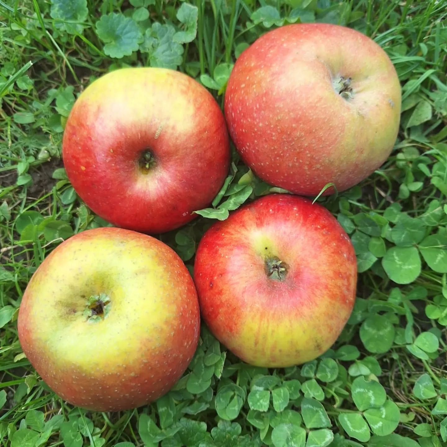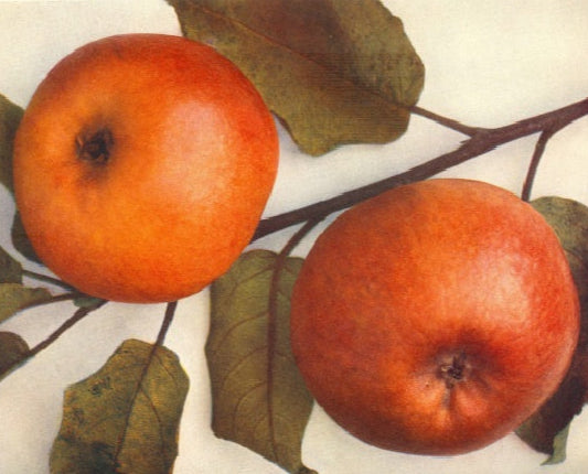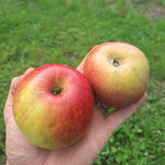 PLODY: stredne veľké (priemerne 120-150 g), guľovité, zdanlivo vysoko guľovité až tupo kužeľovité, 5-hranne rebrovité. Šupka je polodrsná, suchá, neskôr mastná až veľmi mastná, v dobe zberu žltozelená, prekrytá oranžovočervenou krycou farbou s veľkým, výrazne tehlovočerveným, nepravidelne pruhovaným líčkom a výraznými lenticelami, miestami s hrdzou. Dužina je žltozelená až žltobiela, zrnitá, veľmi šťavnatá, krehká, po rozkrojení len málo hnedne. Chuť je sladkokyselkavá s korenistou príchuťou, výborná.