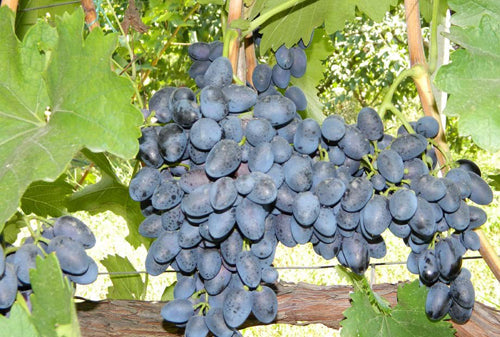 PLODY: Strapce odrody sú veľké (600-800 g), rozvetvené aj predĺžené. Tmavomodré bobule sú stredne husto až redšie rozložené na strapci, sú veľké (priemerne 27x23 mm, 6-8 g), podlhovasté a mierne zašpicatené. Zle odkvitnuté bobule môžu byť menšie a sú bezkôstkové. Chuť jednoduchá, harmonická, sladká, konzistencia chrumkavá. Cukornatosť je stredne vysoká, 17-19 °NM. Plody nepraskajú.